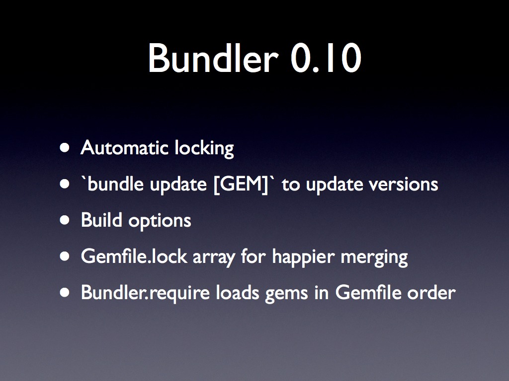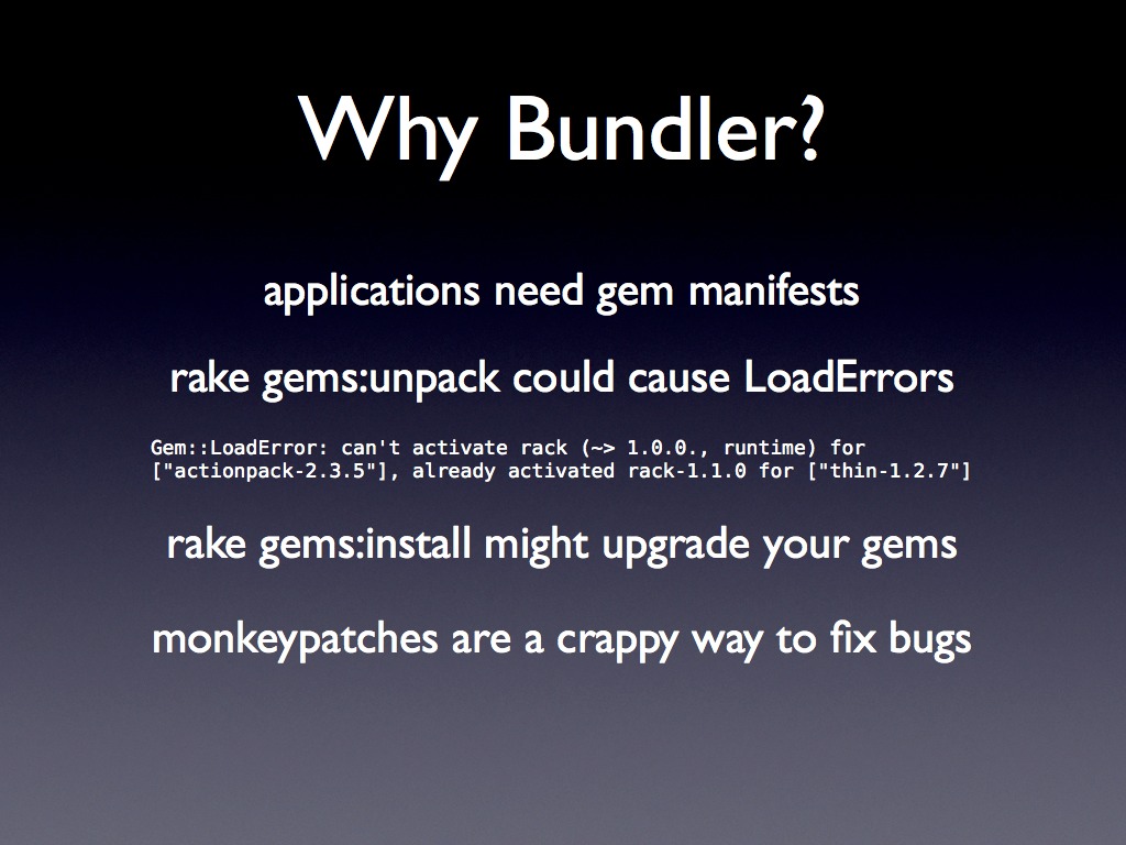 Slides from my Bundler talk at the Red Dirt Ruby Conference